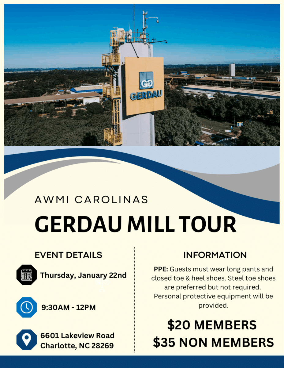 Gerdau Steel Mill Tour Charlotte, NC JANUARY 22ND Step into the heart of modern manufacturing this January with the Carolinas chapter for an exclusive tour of Gerdau’s Charlotte facility. Witness firsthand how one of North America’s largest recyclers transforms scrap metal into the high-quality structural steel that builds the world! REGISTER BY THURSDAY, JANUARY 15TH […] |