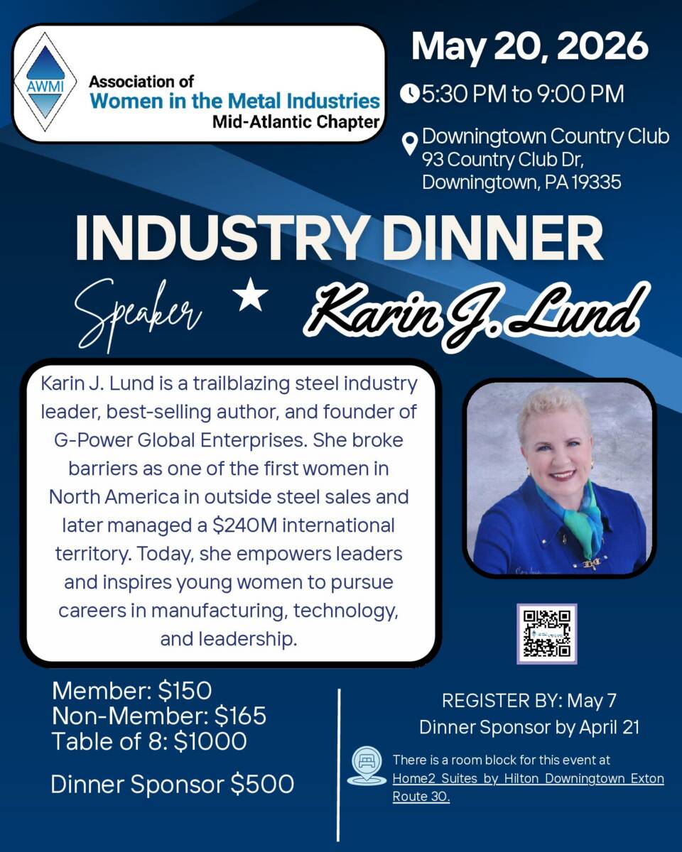 Please join AWMI Chicago for our annual Industry Dinner! Enjoy an evening of networking, learning, and mentorship in the metal industries, featuring cocktails, hors d’oeuvres, and dinner with industry peers. Hear from keynote speaker Michael J. Hrosik of Cleveland-Cliffs Steel as he shares insightful perspectives in a night designed to inspire and connect professionals. […] |